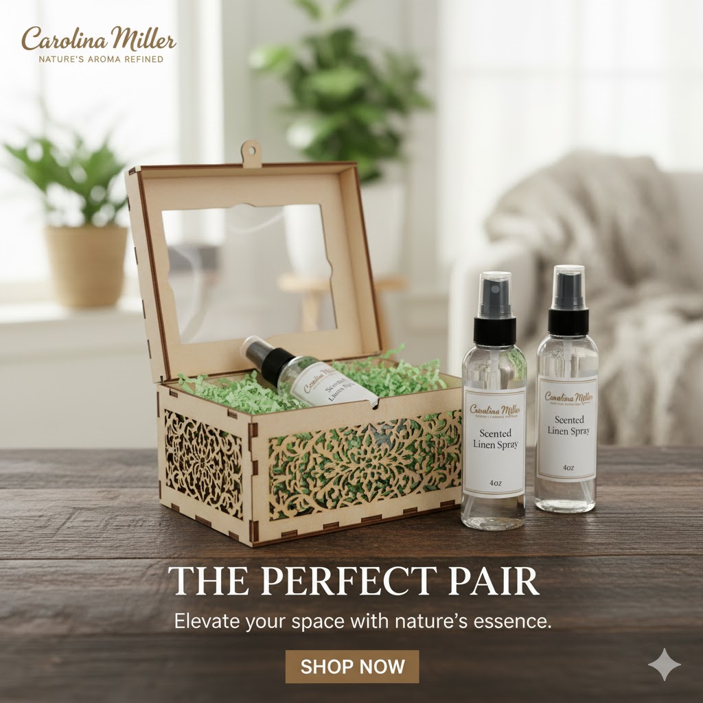 Transform your home into a serene sanctuary with the Carolina Miller Scented Linen Spray Box Set, featuring two bottles of your favorite scent. Thoughtfully crafted with elegant, clean fragrance blends and gentle ingredients, each spray adds a soft, refined aroma to your linens and living spaces—never overpowering, always sophisticated.